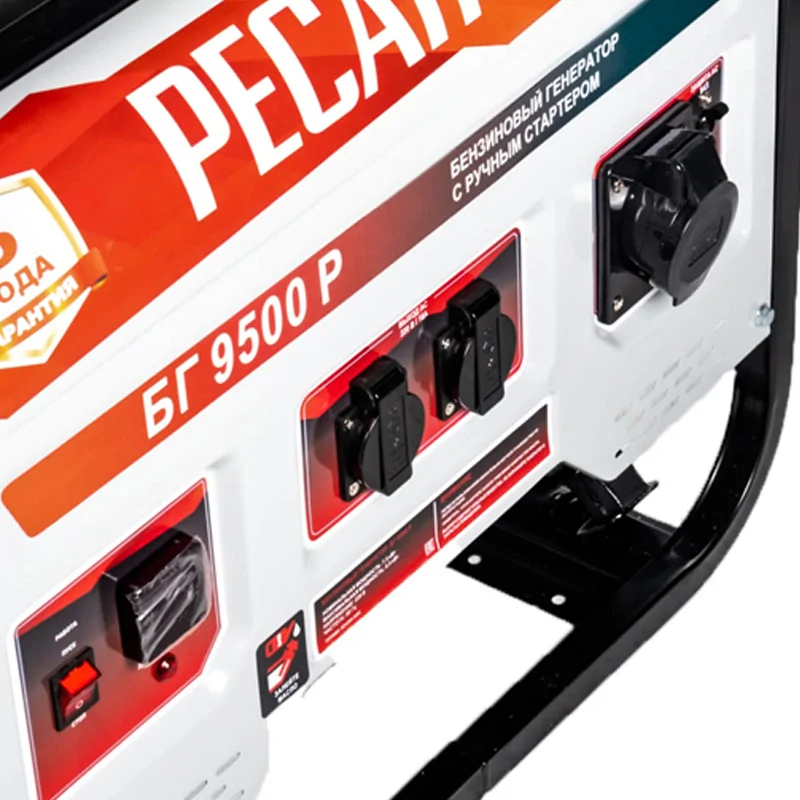 Электрогенератор РЕСАНТА БГ 9500 Р — устройство мощностью 7500 Вт для автономного снабжения электроэнергией жилищных и коммерческих объектов, например, магазинов и офисов.