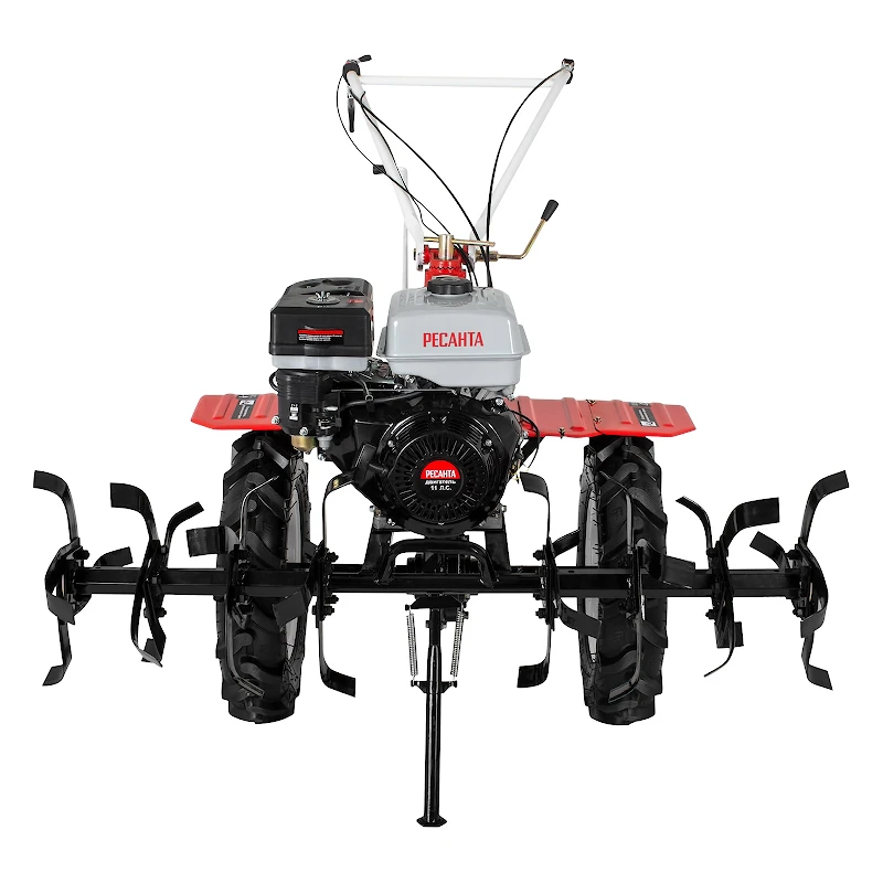 Двигатель мотоблока Ресанта имеет защитную блокировку от работы с низким уровнем масла. Обогащение топливной смеси, поступающей в камеру сгорания, производится через маслонаполненный воздушный фильтр.