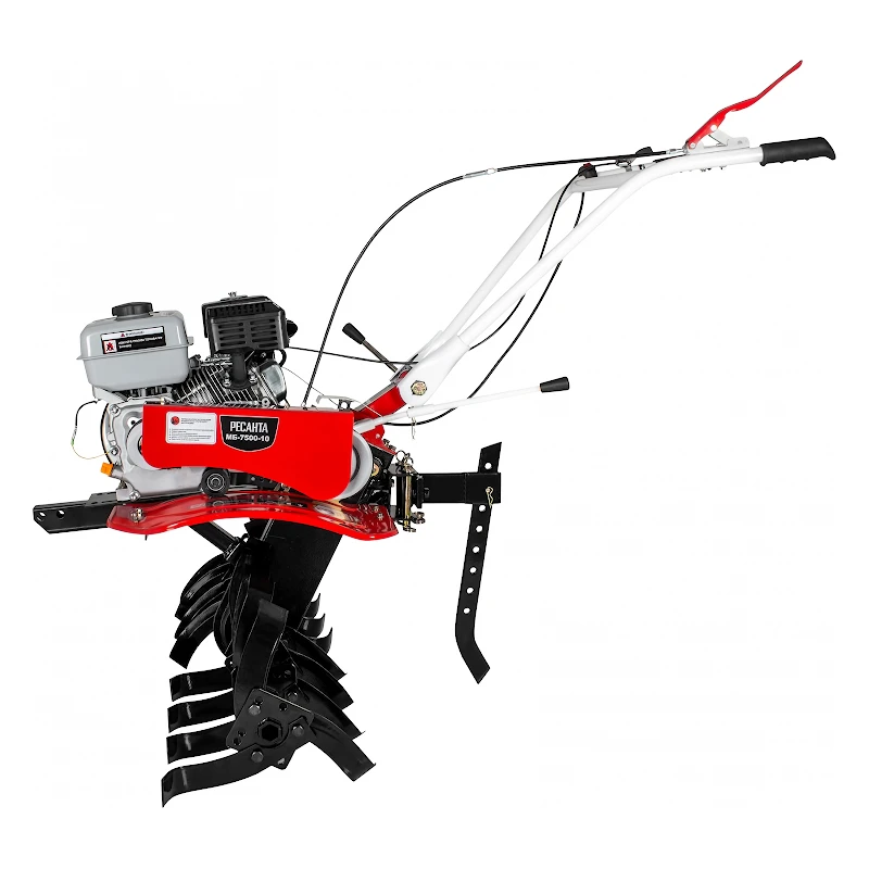 Сельскохозяйственная машина Ресанта МБ-7000P-10, оснащенная четырехтактным бензиновым двигателем мощностью 7 л.с., поможет справиться с различными задачами по обработке почвы на приусадебных участках. Тягово-сцепное устройство мотоблока имеет стандартную форму, позволяющую подсоединять к нему прицеп и широкий спектр активного навесного оборудования, такого как роторные косилки, ворошилки, картофелекопалки и прочее. В комплект поставки входят фрезы диаметром 30 см из закаленной стали. Вместительный топливный бак объемом 3,6 л гарантирует продолжительную работу без необходимости дозаправки.