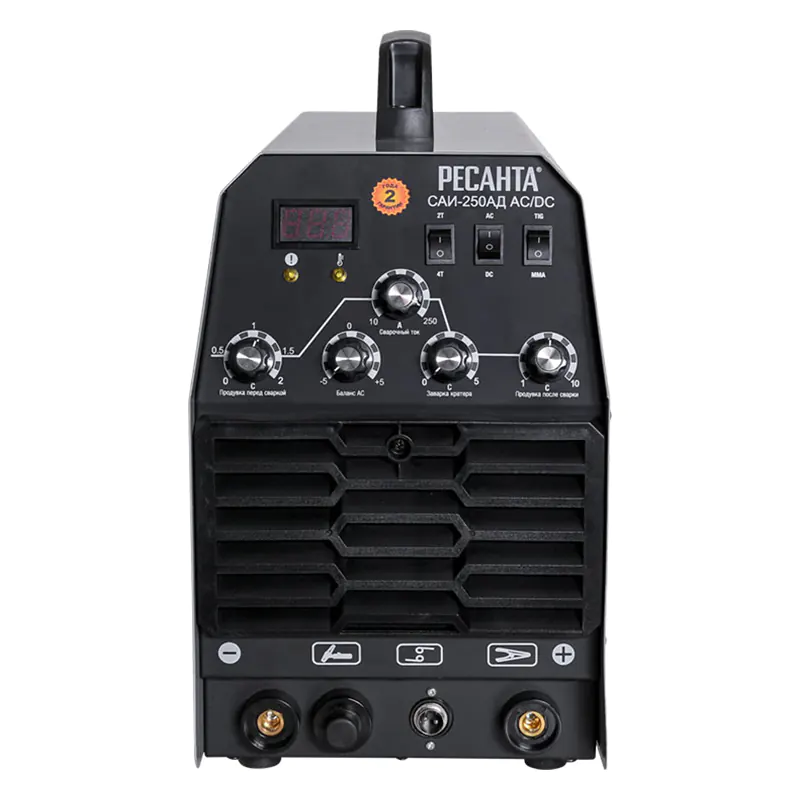 РЕСАНТА САИ - 250 АД AC/DC оснащен LED - дисплеем, который отображает индикацию сварочного тока.