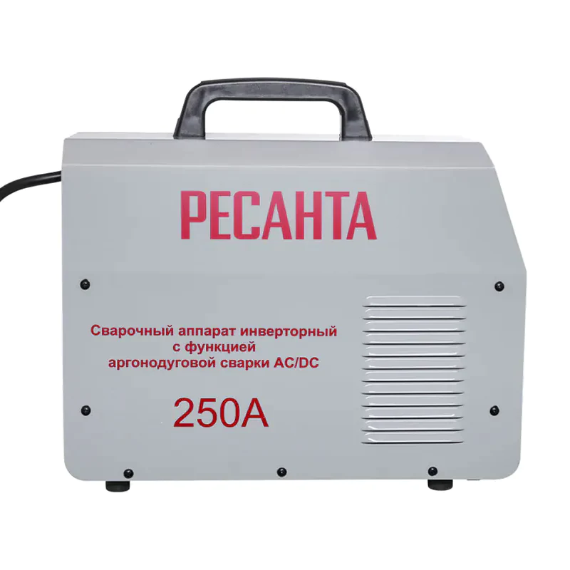 Сварочный аппарат инверторный РЕСАНТА САИ - 250 АД AC/DC — аргонодуговая установка, которая работает как на постоянном, так и на переменном токе. В зависимости от типа материала можно регулировать сварочный ток в диапазоне от 15 до 250 А.