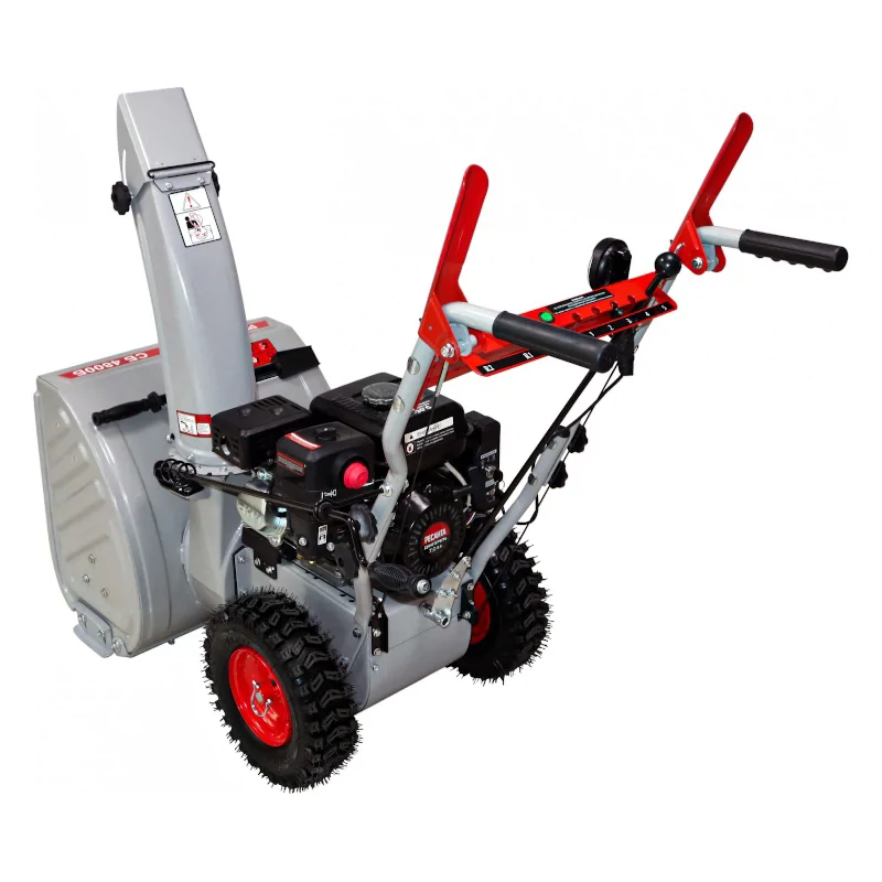 Для простого передвижения по склонам и рыхлому снегу в снегоуборщике предусмотрено несколько скоростей. На выбор в самоходной модели есть 5 передних и 2 задние. Ход назад пригодится при парковке, развороте на узкой дорожке, а также при застревании колес.