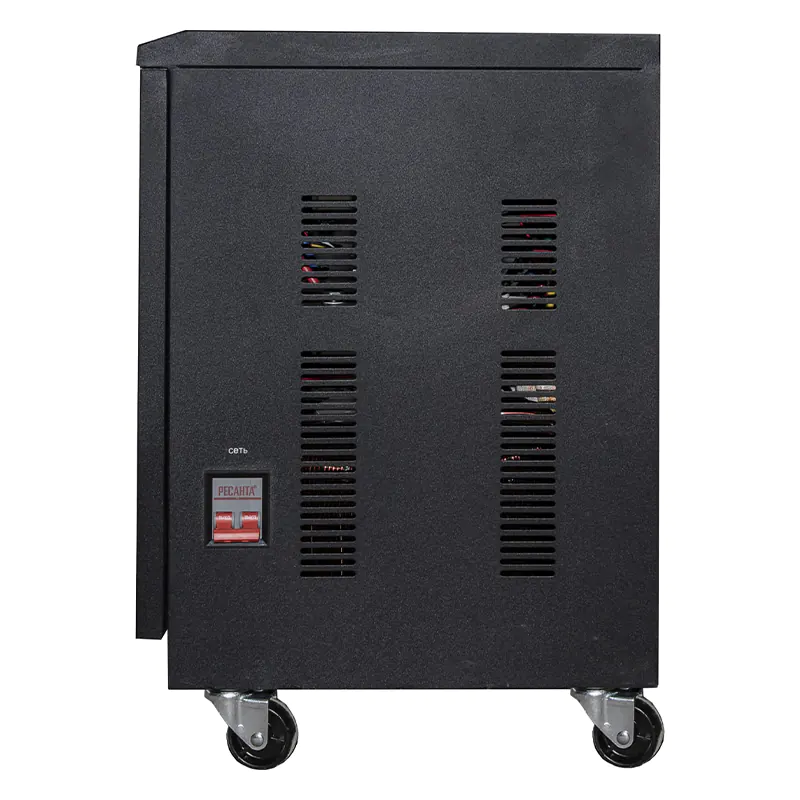 Стабилизатор напряжения однофазный РЕСАНТА СПН-17000 используется для выравнивания входного напряжения и защиты подключаемых приборов от перепадов электричества. Минимальное значение тока составляет 90 В, благодаря чему устройство подходит для мест с некачественной сетью и нестабильными источниками энергии.