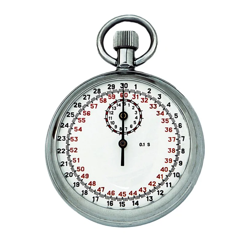 Отсчет времени в секундомере ведется стрелкой по 30-секундной шкале с ценой деления 0,2 секунды. Одновременно с этим производится измерение в минутах на вспомогательном маленьком циферблате. Высокая точность измерений обеспечивается за счет оснащения колебательной системой “баланс-спираль”, используемой в карманных часах, с интервалом 0,4 секунды, а также хромированного корпуса, который обеспечивает долговечность прибора и устойчивость к воздействиям температур. Для большей наглядности циферблат и стрелки выполнены в контрастном с остальным корпусом черном исполнении.