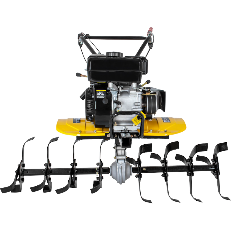 Мощность инструмента составляет 7 л.с., что позволяет применять его в различных сферах: культивации, рыхлении и обработки почв любой плотности. Извлечение прибора из земли по окончании использования происходит просто благодаря задней передаче. Вам не придется применять физическую силу, если инструмент застрял в почве.