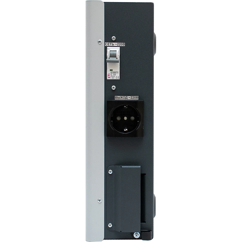 ЖК-дисплей и светодиоды «Норма» и «Авария» дают полную информацию о состоянии прибора. Кнопками на панели переключают отображаемые параметры и выбирают выходное напряжение в пределах 220–230 В. Автоматический байпас при сбое в работе стабилизатора переключает нагрузку напрямую на сеть – электропитание не прерывается, пока устройство не вернется в рабочий режим.