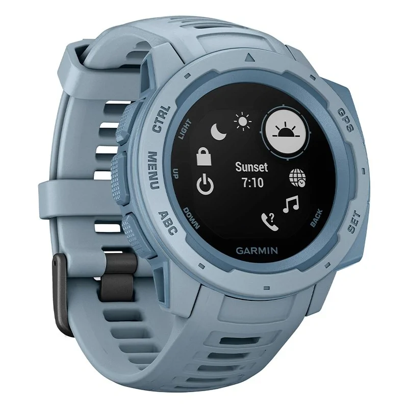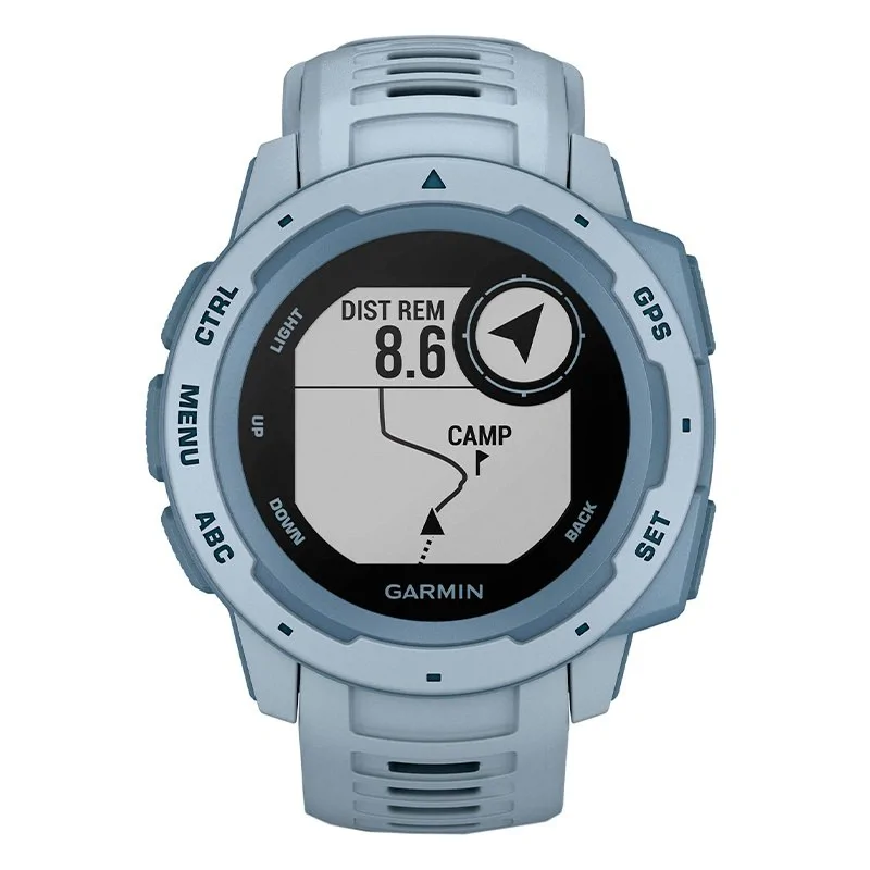 Спортивные часы Garmin Instinct Sea Foam со встроенным GPS-приемником соответствуют военному стандарту качества 810G. Прочная конструкция и водонепроницаемость гарантируют длительный срок эксплуатации.