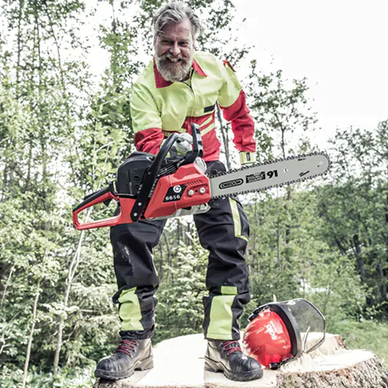 Пила имеет сбалансированную конструкцию, поэтому вы можете выполнять работу в различных пространственных положениях без ущерба эффективности и комфорту. Долговечная, оригинальная пильная шина торговой марки "Oregon" гарантирует высокую производительность, хорошую маневренность и удобство при эксплуатации. Пильная цепь оснащена боковым натяжителем цепи - это позволяет произвести настройку цепи без использования дополнительных инструментов. Модель очень проста и безопасна в использование.