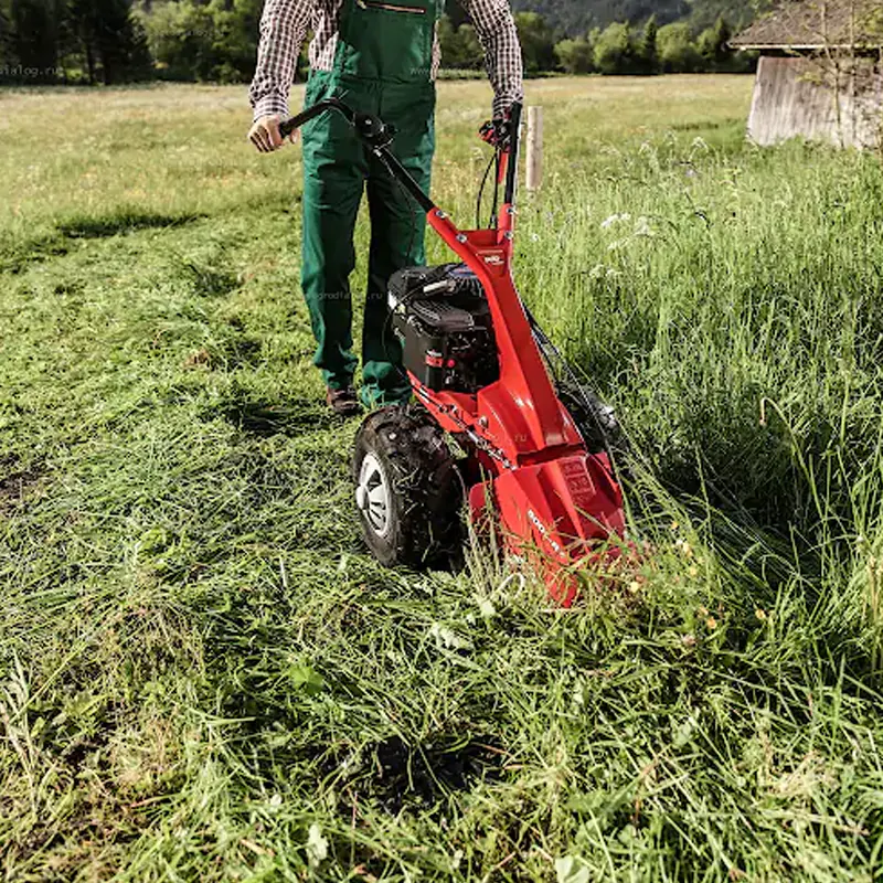 Мощная косилка для грубых работ, что становится возможным благодаря ее маневренности и способности точно косить на краях поля или склонах, гарантируя тем самым экологический уход за садом, поскольку она не повреждает микроорганизмы, живущие на участке. Эргономичный, виброгасящий, регулируемый руль, а также возможность включения или выключения привода колес обеспечивают удобное и безопасное управление мощным устройством. Привод косилочного бруса также может быть включен и выключен отдельно для вашей безопасности во время работы.