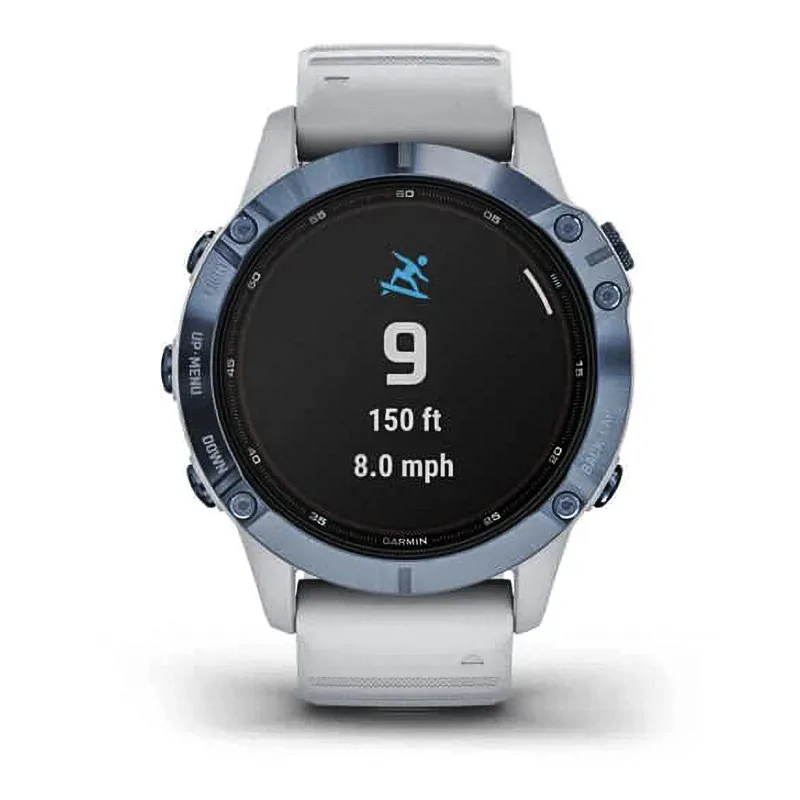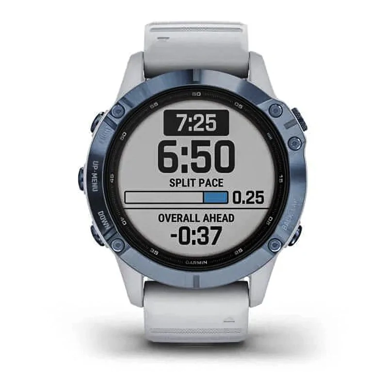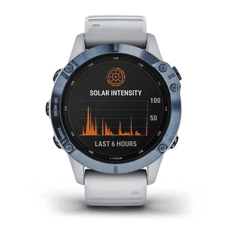 Спортивные наручные часы Garmin Fenix 6 Pro Solar синий минерал с белым ремешком 010-02410-19