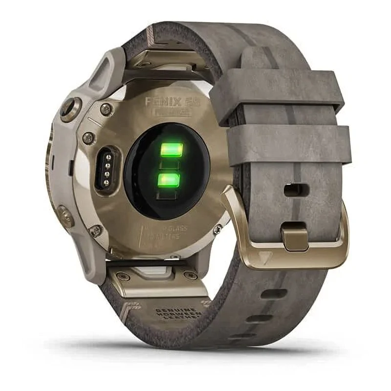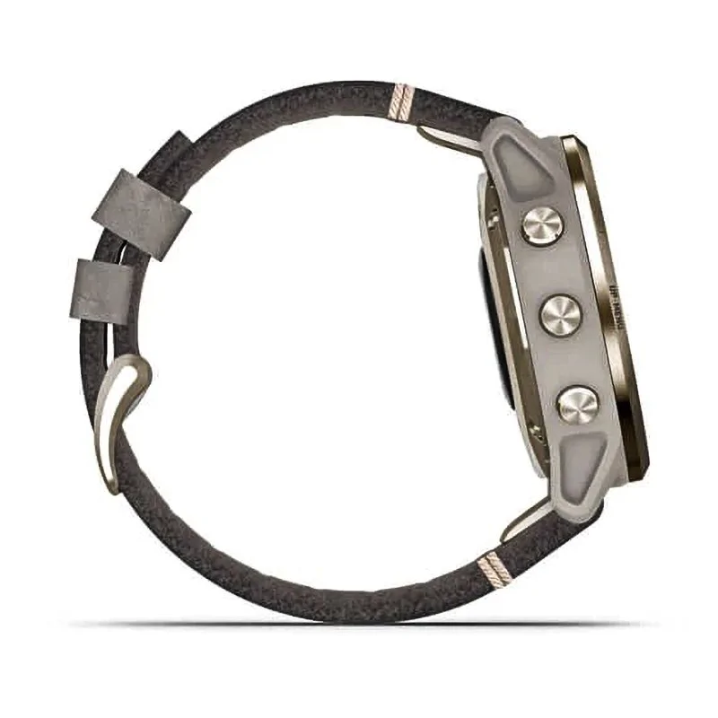 Спортивные наручные часы Garmin Fenix 6s Pro Solar золотистый с серым замшевым ремешком 010-02409-26