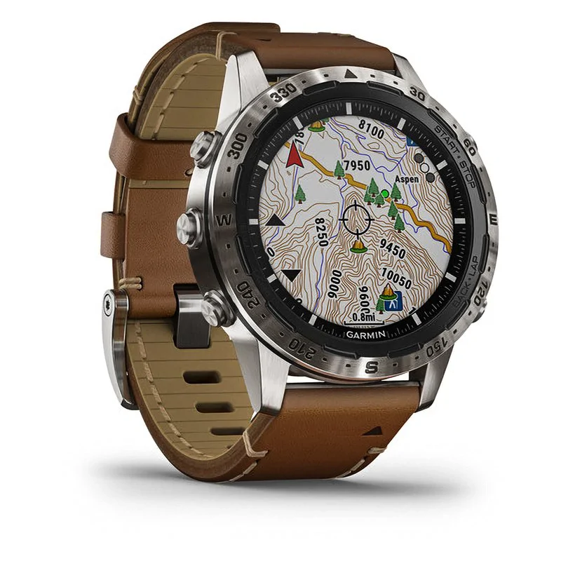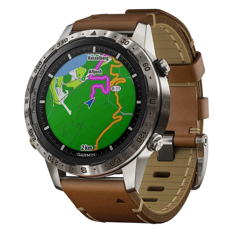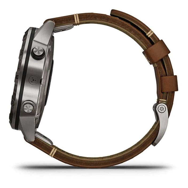 Спортивные часы Garmin MARQ Adventurer поставляются с фирменным итальянскими ремешком из кожи Vacchetta, который обеспечивает комфортное ношение и отличается длительным сроком использования. Цветной высококонтрастный дисплей обеспечивает удобную работу, он окаймлен металлическим кольцом, на котором выгравирован 360⁰-градусный компас.
