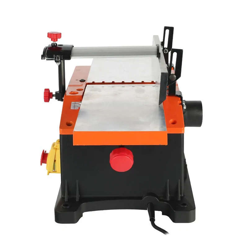 Строгально-фуговальный станок применяется в небольших деревообрабатывающих цехах, а также в частных мастерских. В корпусе устройства расположены отверстия для отвода теплого воздуха из системы, что предотвращает перегрев двигателя. Устойчивость станка на поверхности обеспечивает широкое опорное основание.