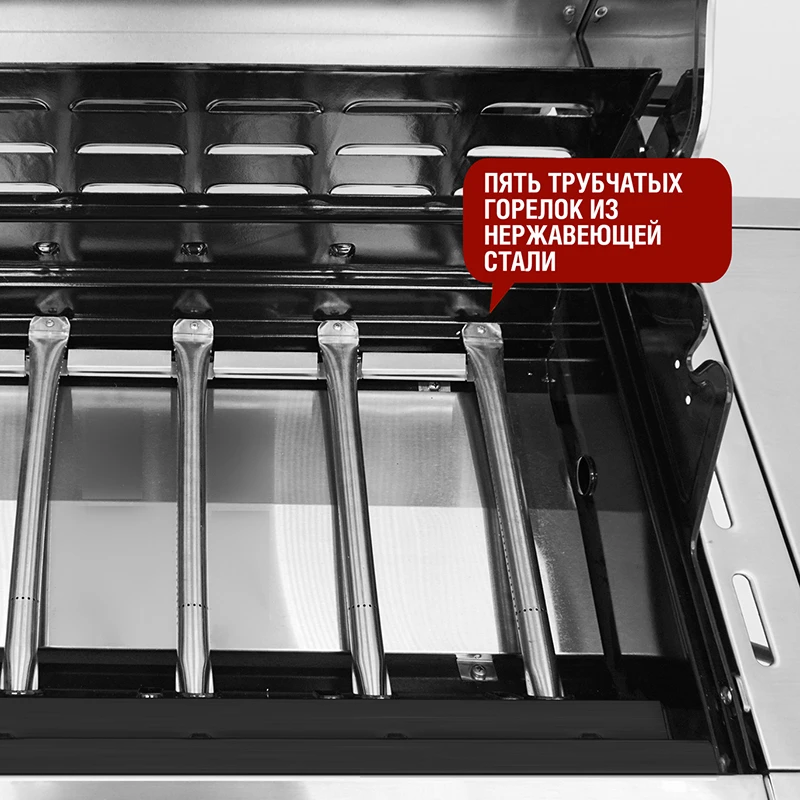 Наличие решетки для подогрева позволит без лишних усилий согреть остывшие блюда, сохранив их вкусовые качества. - Пять газовых горелок