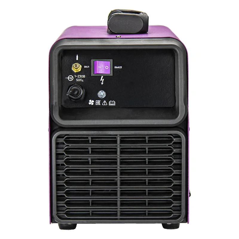 В аппарате установлен термопредохранитель. Он срабатывает при возникновении перегрузки или перегрева. В этом случае на панели управления загорится соответствующий индикатор. Для предотвращения поломки модели сварочный ток будет снижен до минимального значения.