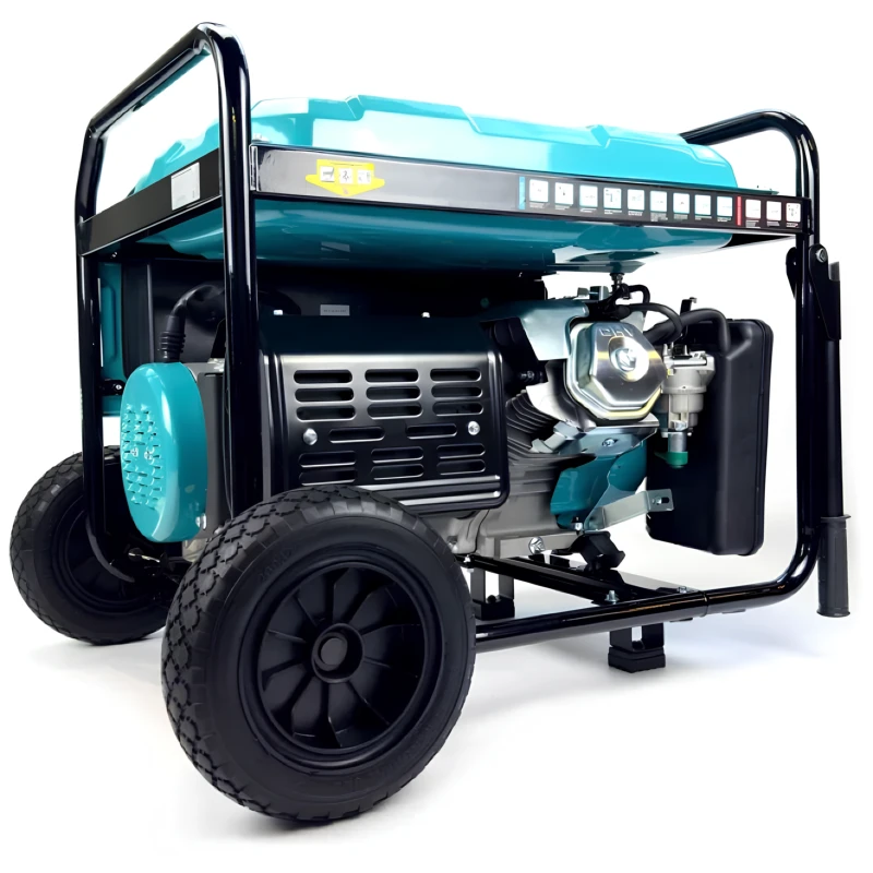 Генератор STEVIMAN GR-6500 оснащён мощным бензиновым двигателем объёмом 420 см³ и мощностью 15 л.с. Четырехтактный мотор стабильно и уверенно обеспечивает электроснабжение вашего дома, дачи или строительной площадки. Благодаря ручному и электрическому стартерам запуск всегда легкий, даже в холодное время года. Низкий расход топлива (2,3 л/ч) продлевает работу генератора до 10 часов без дозаправки. Однофазный синхронный генератор с цифровым регулятором AVR обеспечивает стабильное напряжение 220(230) В и номинальную мощность 6 кВт (максимальная – 6,5 кВт). Это позволяет безопасно подключать чувствительную бытовую технику, строительное оборудование и электронику. Аналоговый стрелочный вольтметр помогает контролировать работу и вовремя заметить отклонения напряжения.