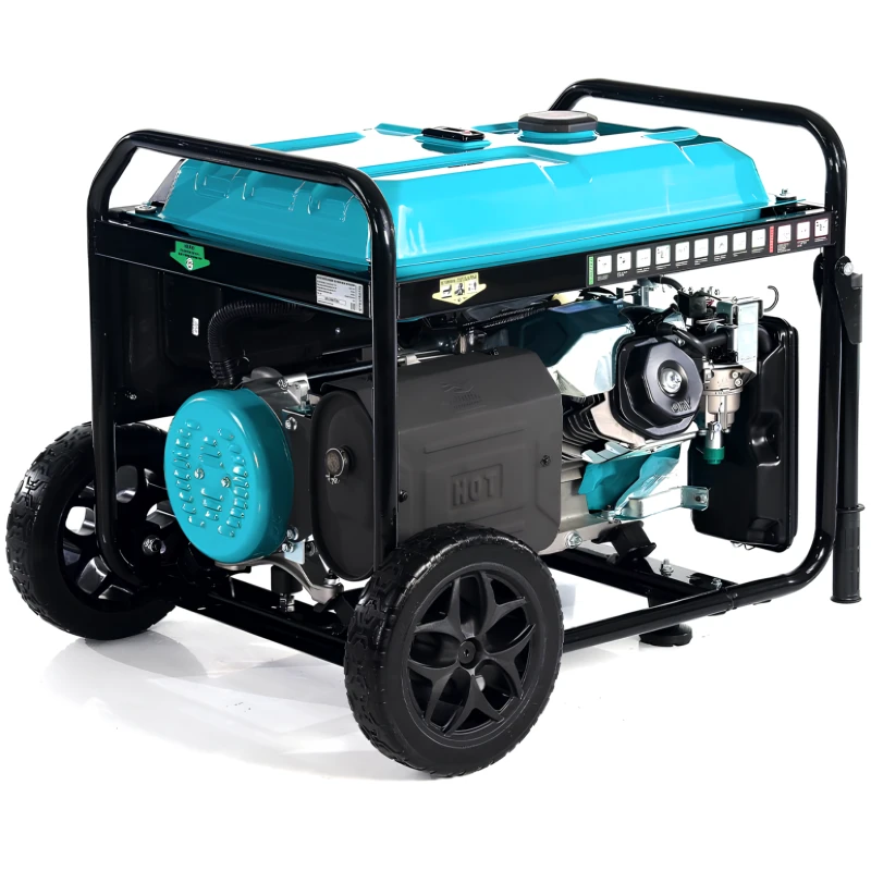 Пуск генератора доступен в двух вариантах: ручной или с помощью электростартера — выбирайте, как удобнее! В комплекте уже идет аккумулятор, что особенно ценно при электрозапуске. Транспортировочный комплект облегчает перемещение 91-килограммовой установки — больше никаких лишних хлопот с тяжелым оборудованием. На новых генераторах в отличии от старых есть кнопка запуска старт-стоп, везде медная обмотка и на каждую модель можно подключить блок автоматики. Такая комплектация существенно повышает удобство, надежность и безопасность эксплуатации, позволяя подстроить генератор под ваши задачи.