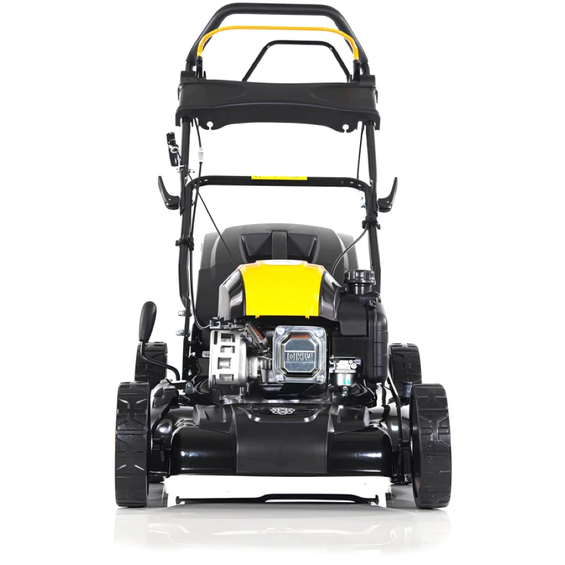 Дека газонокосилки выполнена из стали, что обеспечивает высокую прочность конструкции и долговечность при работе в различных условиях. Стальной корпус надежно защищен от механических повреждений и коррозии. Увеличенные задние колеса с подшипниками обеспечивают плавное движение и отличную маневренность на неровных участках. Все четыре колеса оснащены подшипниками, что минимизирует износ и обеспечивает легкость хода даже после длительной эксплуатации. Прочная конструкция рассчитана на интенсивное использование и выдерживает серьезные нагрузки.