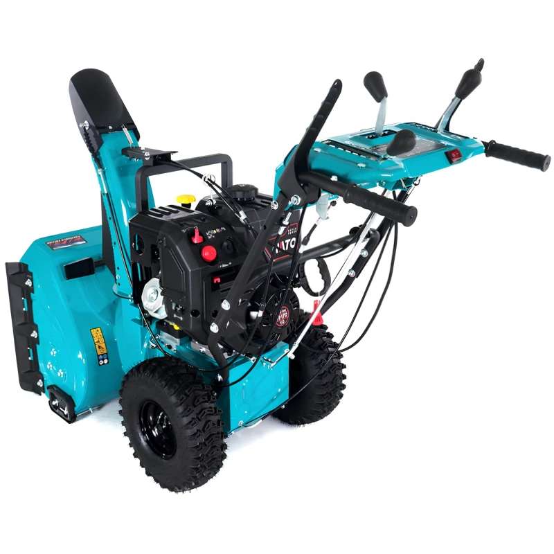 В машинах стоят усиленные кронштейны роликов шнека. Большая прочность снимает часть лишней нагрузки на редуктор и ремень привода шнеков, что улучшает показатели износа данных элементов снегоуборщика. Новинки имеют максимально сбалансированные скорости передач. Эксплуатировать агрегаты комфортно как при движении вперед, так и назад.