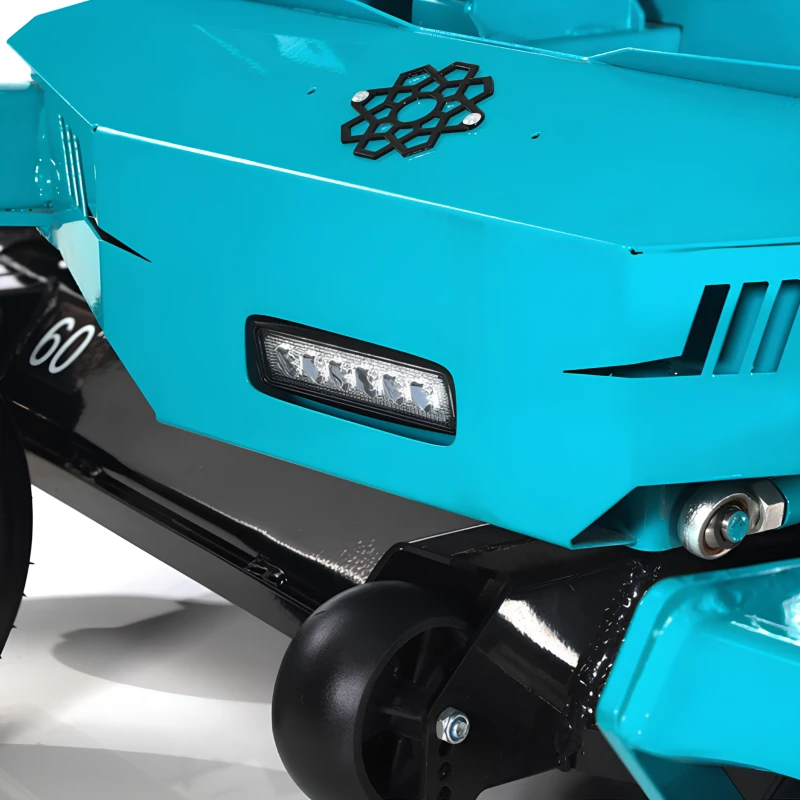Райдер оснащен усиленными колесами с подшипниками на всех осях, что увеличивает их долговечность. Задние колеса 23х10.50-12" обеспечивают отличное сцепление с поверхностью, а передние 13х6.50-6" улучшают маневренность и плавность хода. Даже на сложном рельефе техника остается устойчивой и легко управляемой. Ширина скашивания 152 см позволяет значительно сократить время работы, обрабатывая большие территории за один проход. Доступен режим бокового выброса, который равномерно распределяет скошенную траву по участку. Простое включение привода ножа осуществляется нажатием кнопки, что делает процесс максимально удобным.
