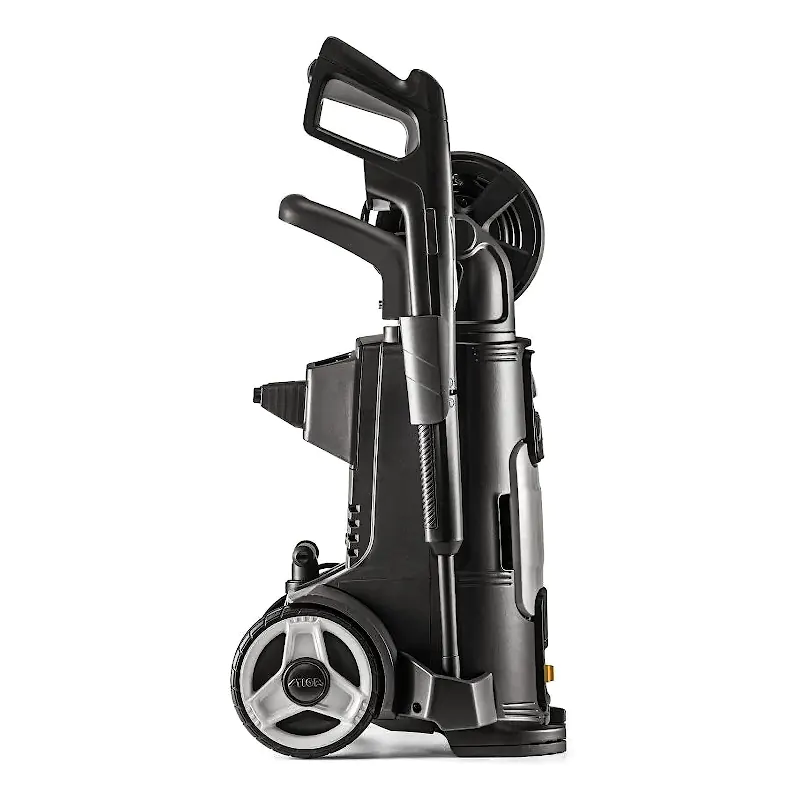 Длина шланга высокого давления составляет 9 м. Он позволяет работать на расстоянии от мойки, избавляя вас от необходимости частого перемещения минимойки за собой. Высокая температура нагрева и распылитель пены для работы с моющим средством обеспечивают простое удаление даже стойких загрязнений.
