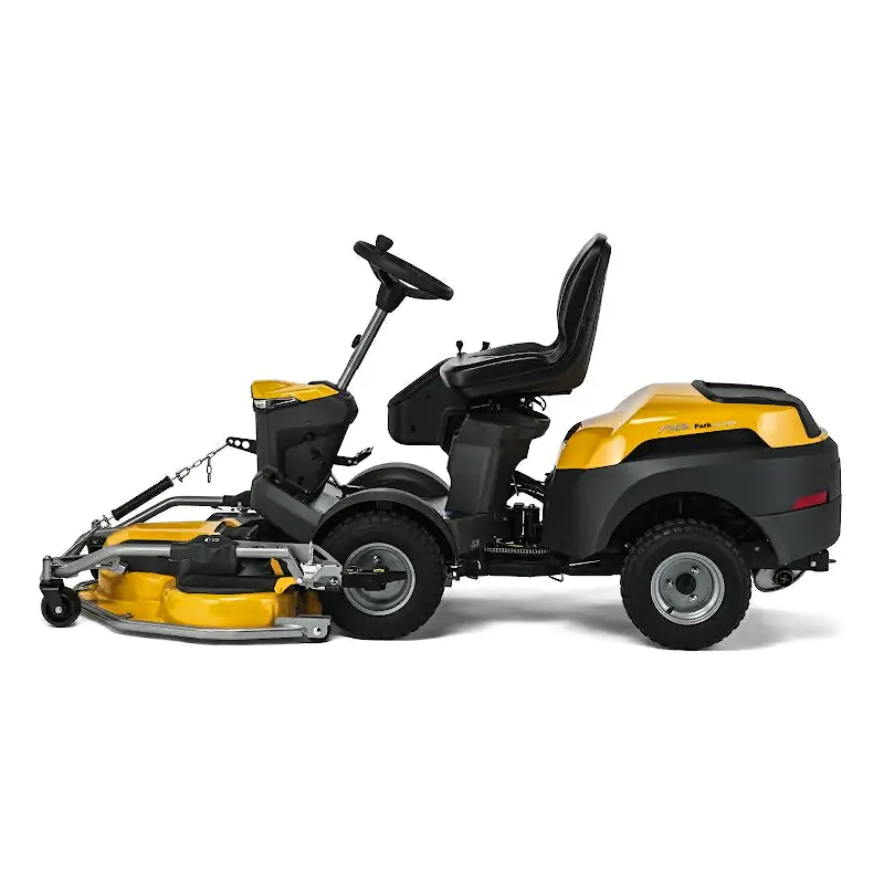 Park 640 PWX также оснащен сиденьем с высокой спинкой и удобной эргономичной боковой панелью с электронным регулятором высоты и вместительным отделением для ваших вещей. Вы можете подключить к райдеру любое свое устройство с Bluetooth для мгновенного уведомления о необходимости в техническом обслуживании и обновлении. Передняя дека Park 640 PWX предусматривает несколько вариантов ширины кошения — от 95 до 125 см, обеспечивая быстрое кошение, улучшенный обзор спереди, легкий доступ к углам, аккуратную срезку кромок.