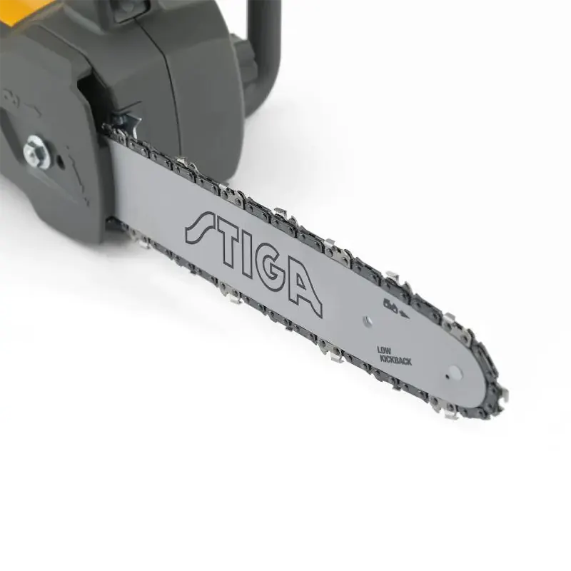 Уровень безопасности увеличивается благодаря быстродействующему цепному тормозу, который активируется вручную или автоматически при появлении инерции, вызванной отдачей.
