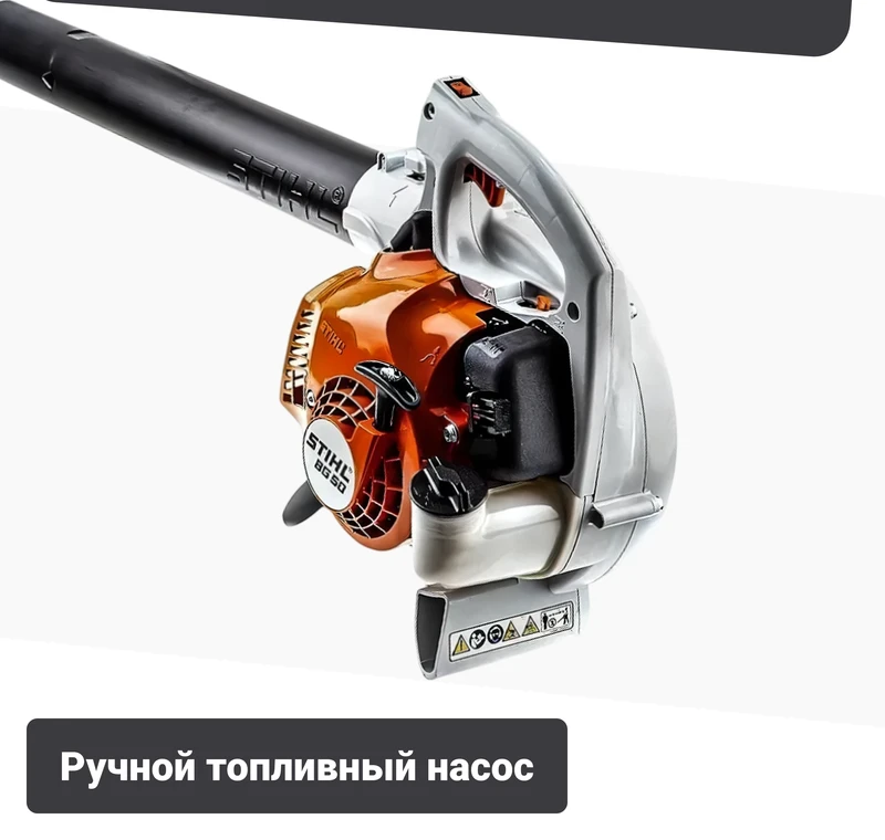 Воздуходувка бензиновая Stihl BG 50 - надежный инструмент, который подойдет и для очистки двора на дачном участке и для уборки небольших городских парков. Устройство крайне просто использовать за счет таких дополнительных функций как: праймер, антивибрационная система и рукоятка с элементами управлениями.