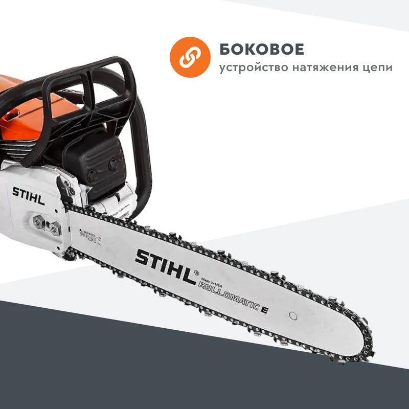 Регулировать натяжение цепи без контакта с острыми зубьями позволяет продуманный боковой натяжитель. Прочная конструкция и качественные материалы делают эту бензопилу надежным инструментом для профессионального использования.