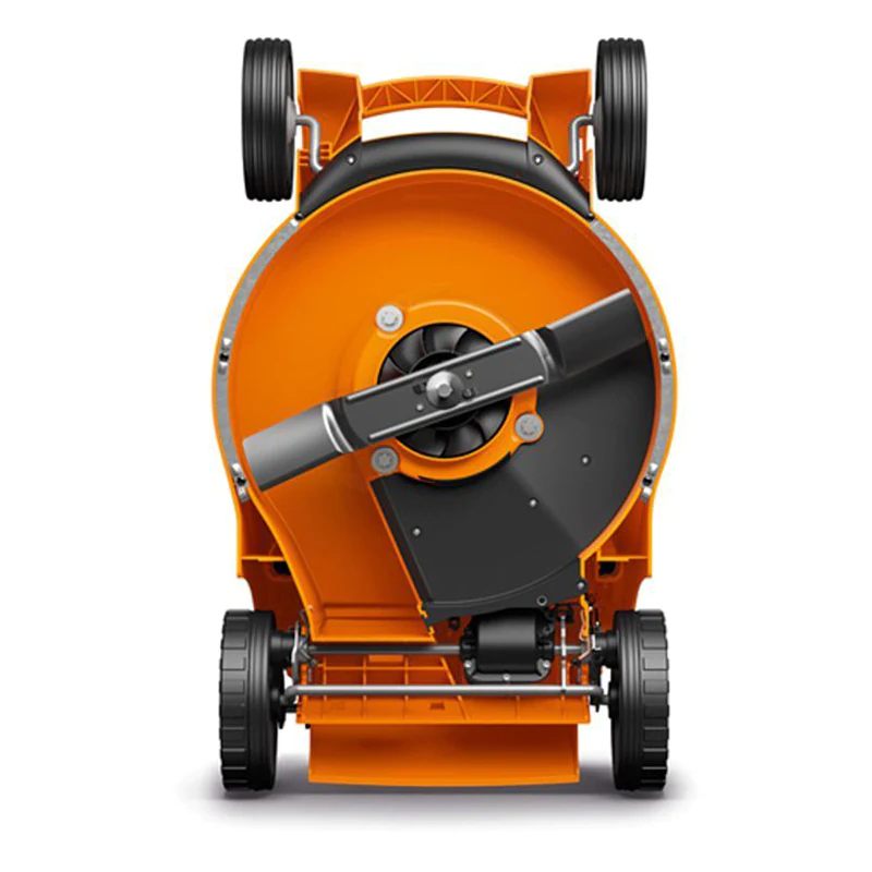 Высота стрижки косилка регулируется ступенчато, что позволяет работать с растительностью различной длины, например короткой травой. Показатели настраиваются с помощью рычага возле колес в диапазоне 25-60 мм. Аэродинамический нож при работе и вращении потоком воздуха приподнимает траву. Механизм обеспечивает ровный срез и аккуратный вид газона.