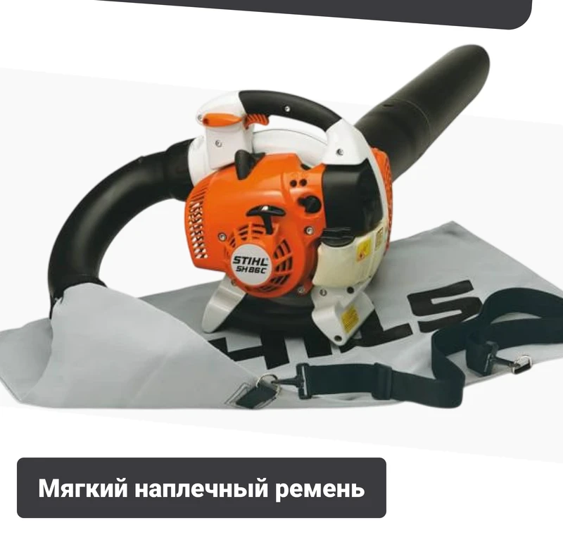 Воздуходувка бензиновая STIHL SH 86 обладает 2 режимами работы: сдувание и измельчение. Дополнительные принадлежности в комплекте обеспечивают полную готовность инструмента к использованию.