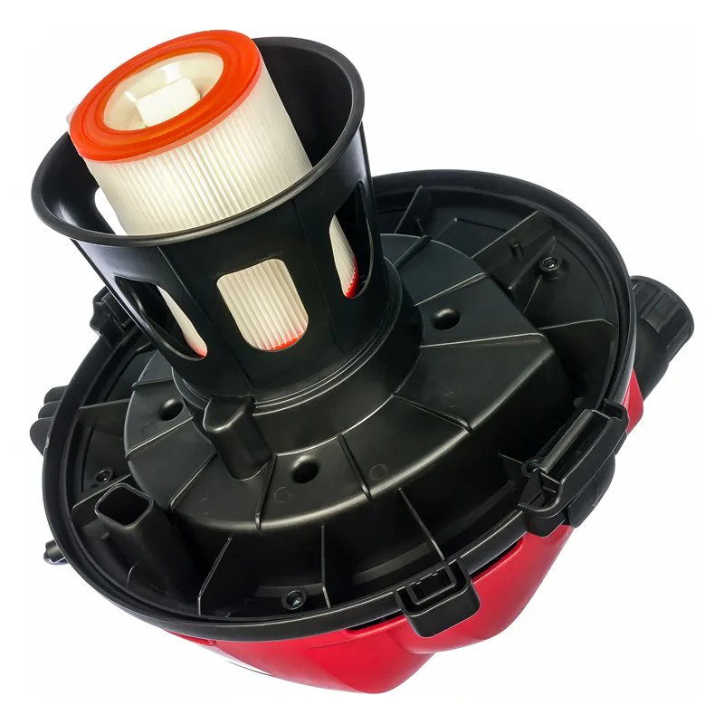 Строительный пылесос с электродвигателем мощностью 1200 Вт создает разряжение 200 мБар, отличается высокой производительностью 2,2 м3/мин. Бак объемом 60 л изготовлен из ударопрочного пластика. Пылесос имеет режим обратного выдува, который пригодится для сметания мусора из труднодоступных мест, просушки краски, продувки оборудования.