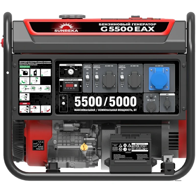 Комплексная система защиты предохраняет генератор SUNREKA G5500EAX от перегрузки и короткого замыкания, а двигатель от поломки из-за низкого уровня масла.