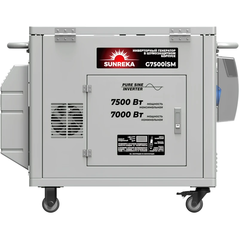 Инверторный генератор SUNREKA G7500iSM создан для работы в самых сложных условиях, где надежность важнее всего. Прочный стальной корпус позволяет устанавливать генератор SUNREKA на улице и использовать в качестве резервного источника питания для загородного дома, коттеджа, мастерской или небольшого производственного объекта. Он выдержит и падение ветки или строительного мусора, и любопытство животных, и атмосферные осадки. Номинальная мощность 7 кВт с «чистой синусоидой» обеспечит стабильным и безопасным питанием весь спектр нагрузки – от циркуляционных насосов и отопительного котла до чувствительной измерительной и компьютерной техники на объекте.