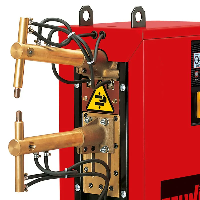 Сварочный аппарат работает в непрерывном импульсном режиме, где ток настраивается до 16400 А. Помимо этого, также можно самостоятельно регулировать силу сжатия электродов и длительность сварки.