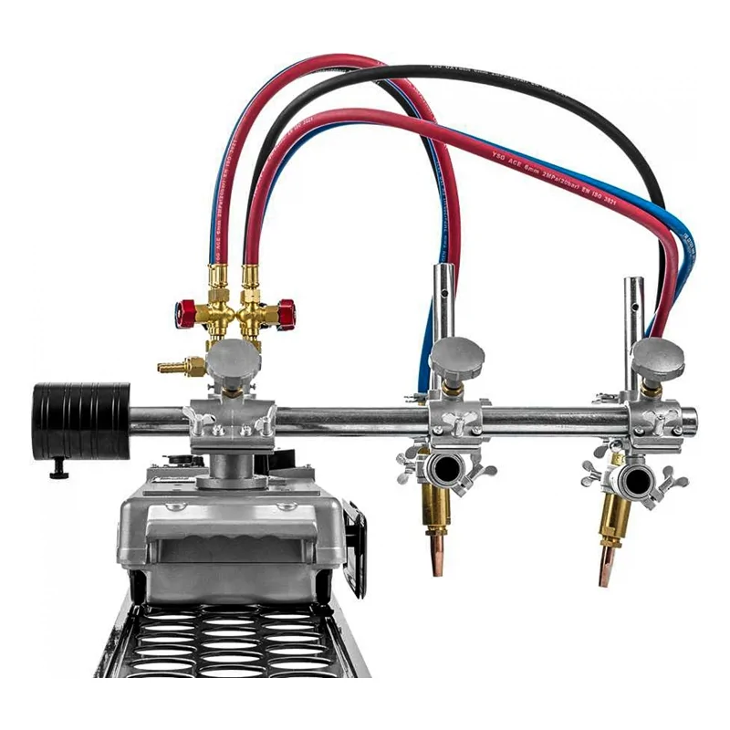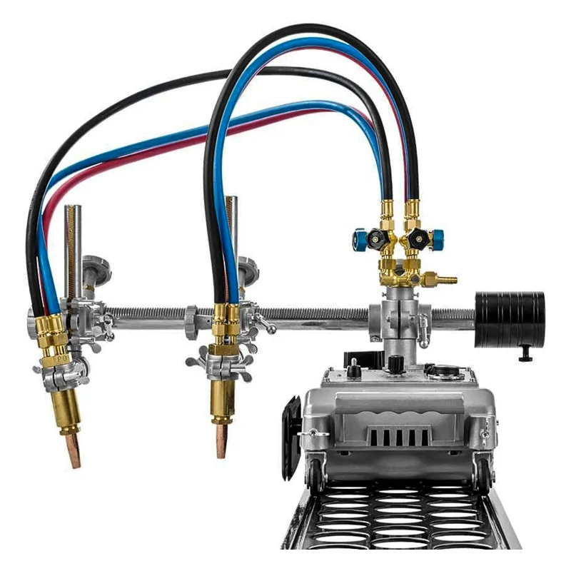 Резка выполняется двумя газокислородными резаками, установленными в держателях на самоходной тележке. Зажим крепления резаков для машин термической резки имеет реечный механизм, который позволяет перемещать резаки, регулировать их высоту установки над поверхностью металла, а также устанавливать угол наклона резаков в пределах ±45°. Положение резаков фиксируется винтами.