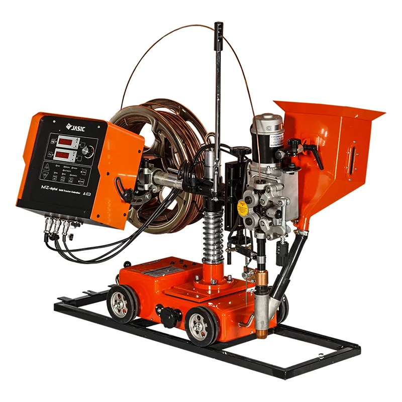 Оборудование представляет собой мощный инверторный источник питания и передвижную каретку, на которую установлены механизм подачи проволоки, 25-ти килограммовая кассета с проволокой, бункер со сварочным флюсом и блок управления. Благодаря современному исполнению MZ 1000 (M308) может производить сварку проволокой от 2 до 5 мм, позволяют сваривать металл толщиной от 4 мм до 30 мм, в том числе на малых токах.