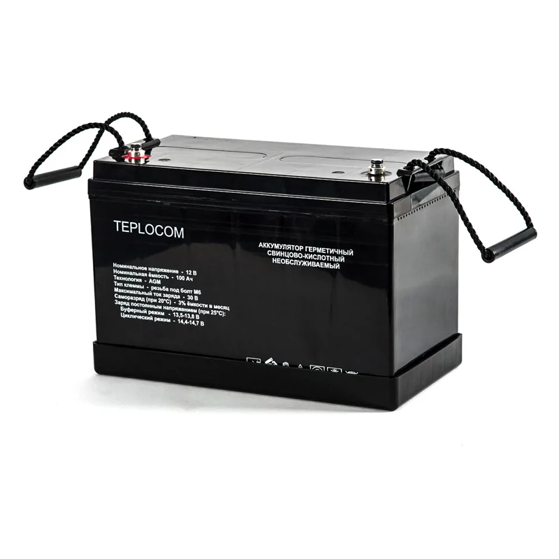 Аккумулятор герметичный свинцово-кислотный необслуживаемый TEPLOCOM 100Ач, производимый по технологии AGM, предназначен для использования в составе системы резервного питания.