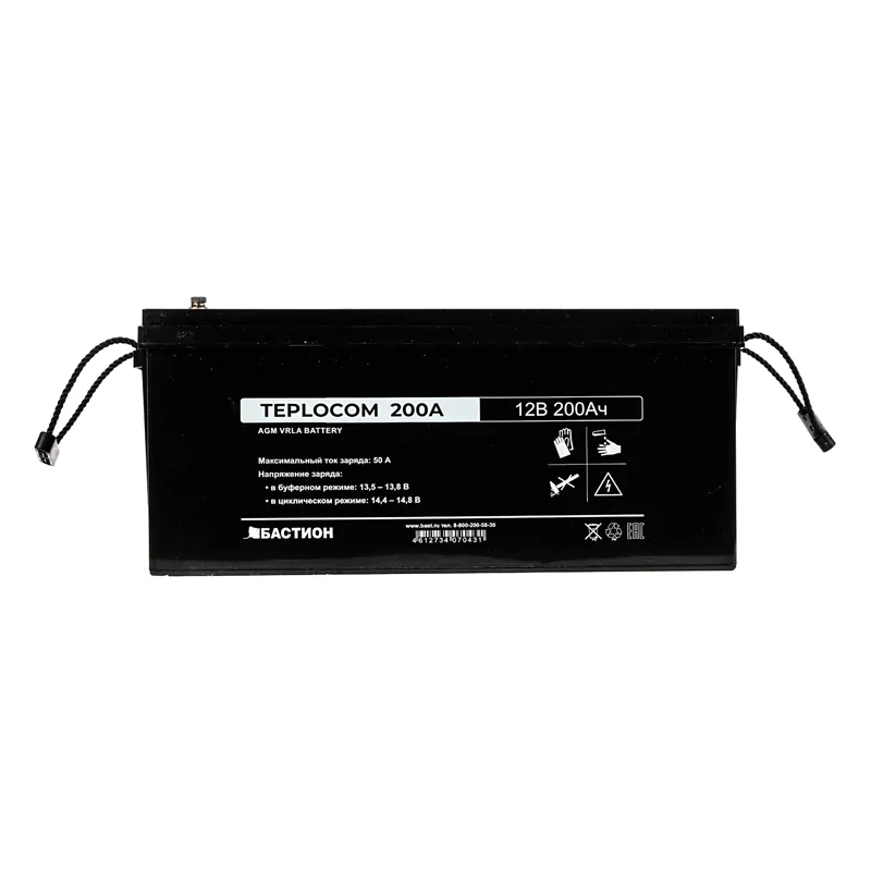Аккумулятор герметичный свинцово-кислотный необслуживаемый TEPLOCOM 200Ач, производимый по технологии AGM, предназначен для использования в составе системы резервного питания.