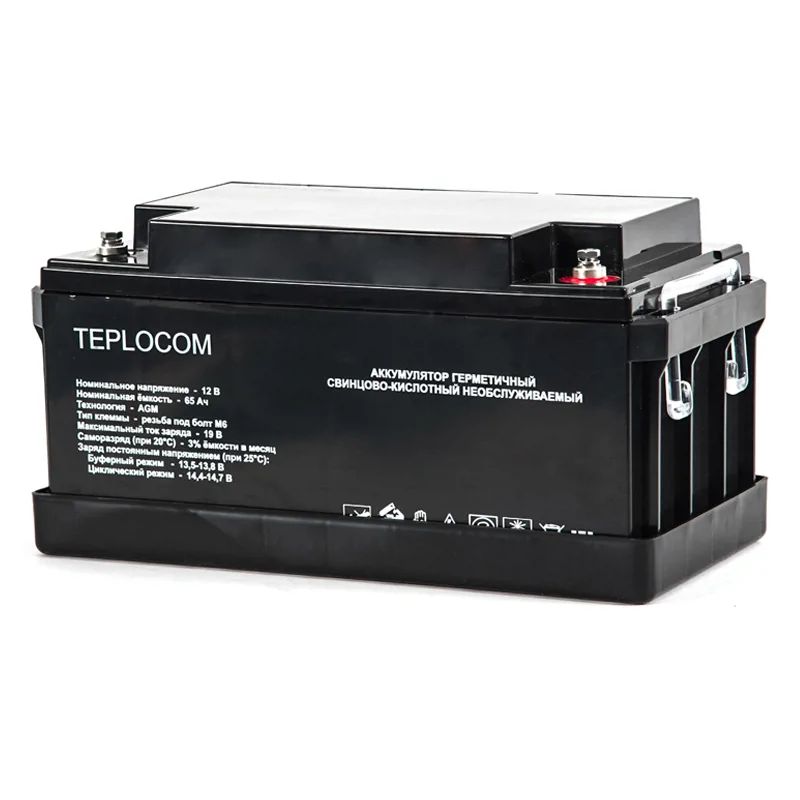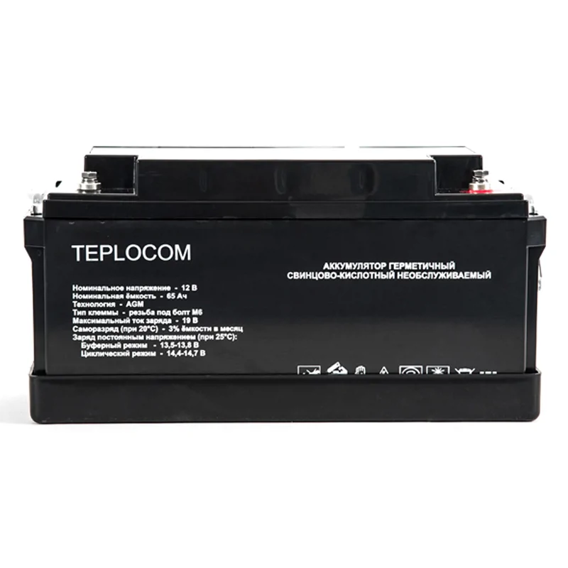 Аккумулятор герметичный свинцово-кислотный необслуживаемый TEPLOCOM 65Ач, производимый по технологии AGM, предназначен для использования в составе системы резервного питания.