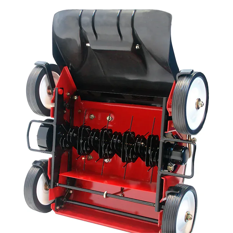 Рабочий орган с пружинными элементами эффективно, но аккуратно удаляет мох и солому с поверхностного слоя легко повреждаемых травяных площадок. Ширина обработки - 38 см.