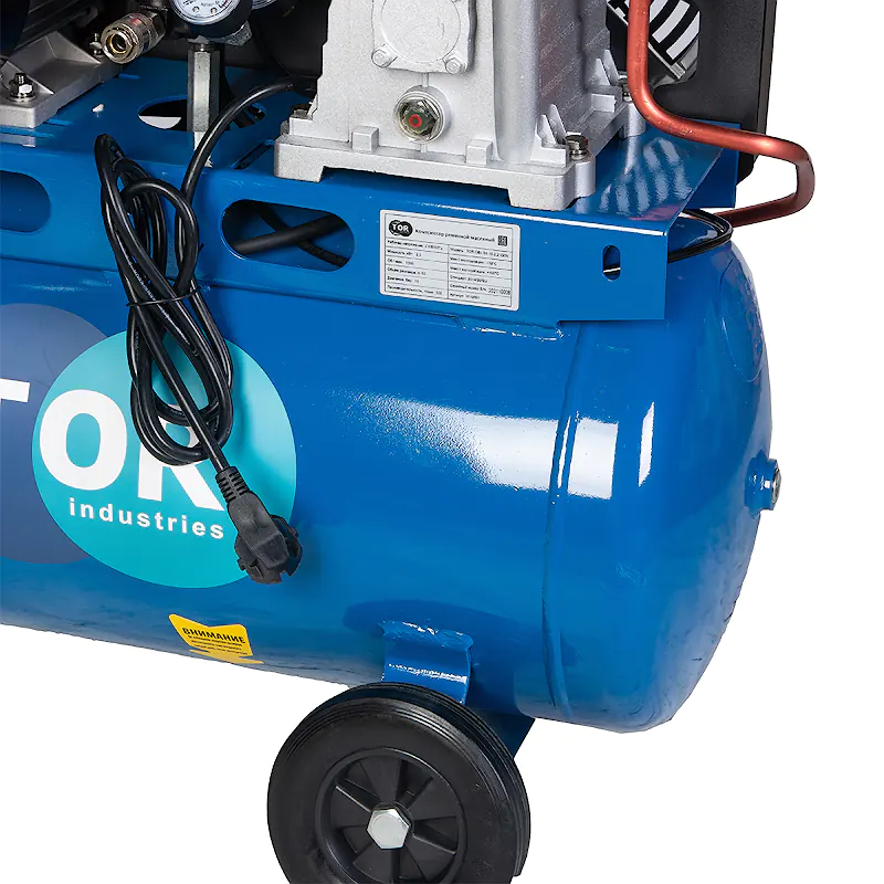 Ременной масляный компрессор TOR OBL 50-10-2,2 220V используется для получения сжатого воздуха с последующей его подачей в пневмоинструмент. Модель подходит для применения в различных производственных условиях, на станциях технического обслуживания, в автомастерских и строительстве. Объем ресивера 50 литров обеспечивает продолжительную работу с оборудованием. Компрессор оборудован предохранительным клапаном для предотвращения чрезмерного давления в баке, что гарантирует безопасность при работе. Ременной привод со шкивами оснащен защитным кожухом для дополнительной защиты. Манометр выходного давления позволяет контролировать уровень подачи давления при работе. Наличие транспортировочных колес позволяет легко перемещать оборудование по рабочей площадке.