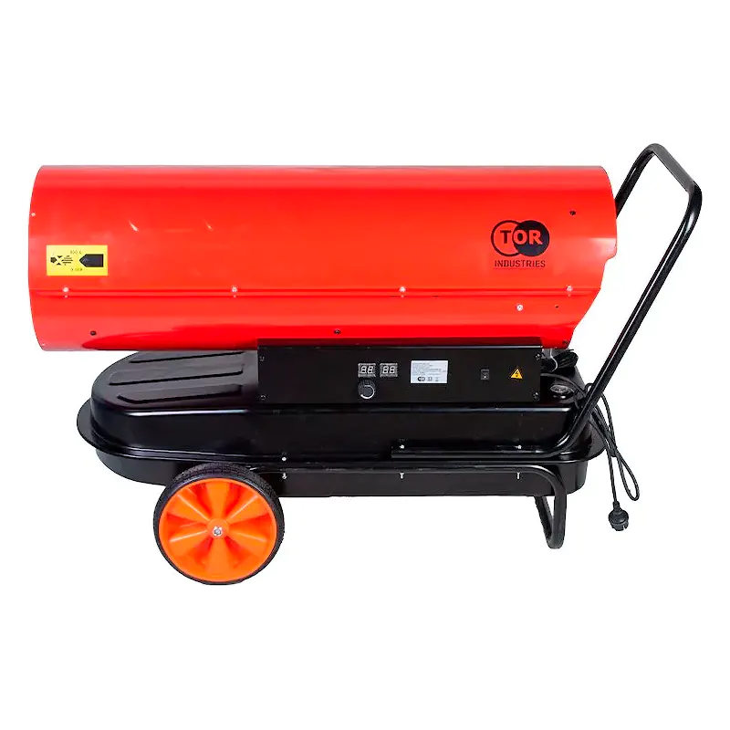 Дизельная тепловая пушка TOR BJD-110 — нагревательный прибор с тепловой мощностью 110 кВт, служащий для обогрева нежилых хозяйственных помещений и просушки предметов или оборудования. Камера сгорания работает на дизельном топливе или керосине. За счет вентилятора, разгоняющего горячий воздух со скоростью 2300 м3/ч, устройство позволяет быстро прогреть воздух.