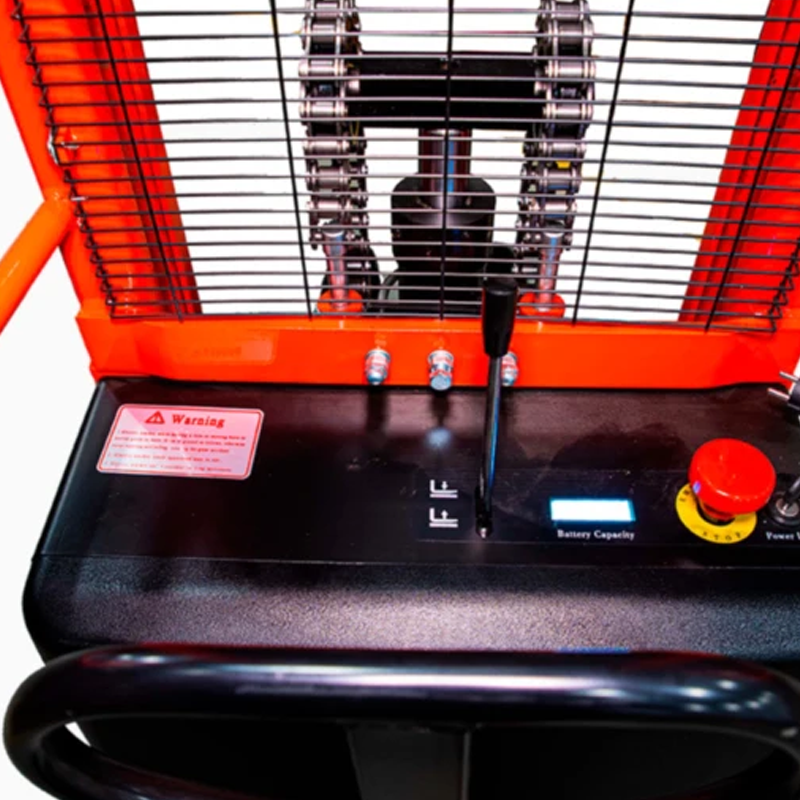 - Электрический привод подъема и спуска вил сокращает время обработки грузов за счет высокой скорости работы, в отличие от ручных штабелеров, так же это значительно снижает нагрузку на оператора