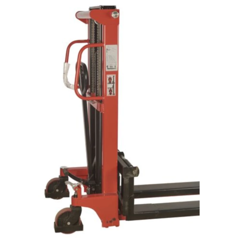 Модель сочетает простоту ручного управления и функциональность гидравлической системы. Оператор легко перемещает даже нагруженный штабелер благодаря низкому центру тяжести и эргономичной рукоятке. Подъем груза осуществляется с помощью гидравлического насоса, управляемого рычагом или педалью. Опускание происходит медленно и плавно, с возможностью регулировки скорости в зависимости от веса груза. Это особенно важно при работе с хрупкими или чувствительными материалами, где требуется деликатное обращение.