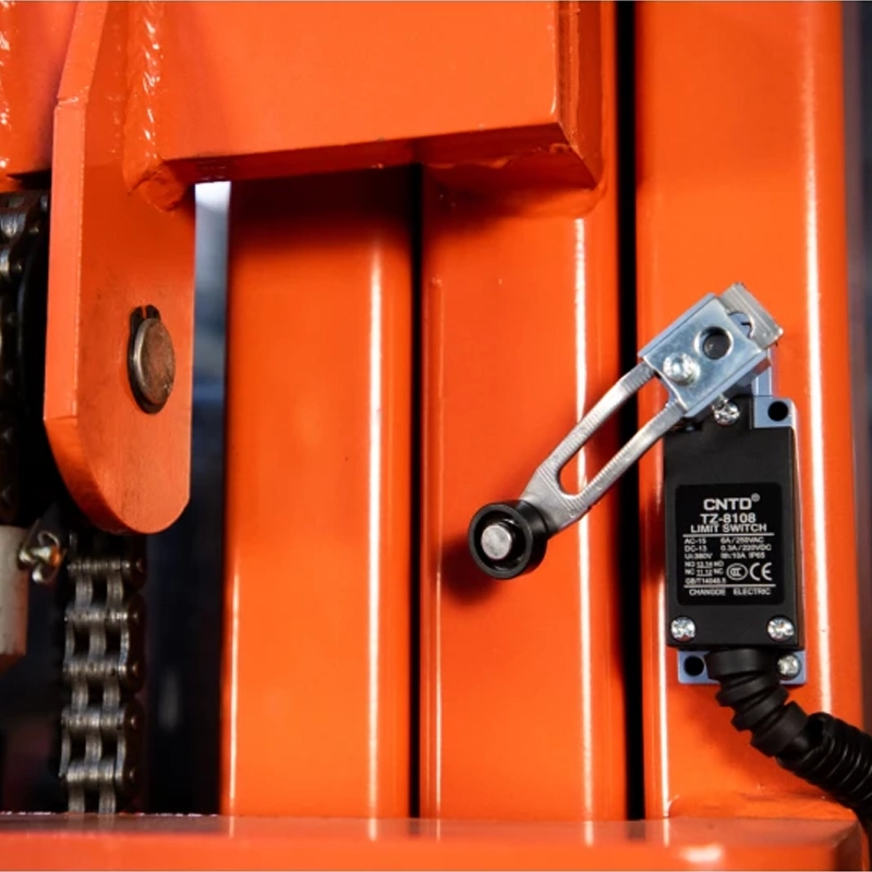 Данная модель оснащена мощным электродвигателем подъёма мощностью 1,6 кВт, который позволяет поднимать груз массой до 200 кг на высоту до 4,5 метров. Время подъёма составляет около 34 секунд, а время спуска — 30 секунд, что обеспечивает оперативное выполнение задач. Максимальная рабочая высота достигает 6,5 метров, что расширяет возможности использования аппарата.