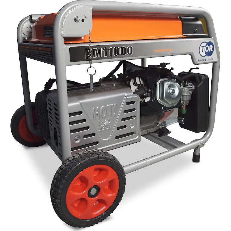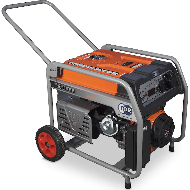 Генератор бензиновый TOR KM11000H 8 кВт 220В 33 л. с кнопкой запуска и колесами эта мощная модель может снабжать электроэнергией несколько потребителей одновременно либо одного, но с высокими пусковыми токами.