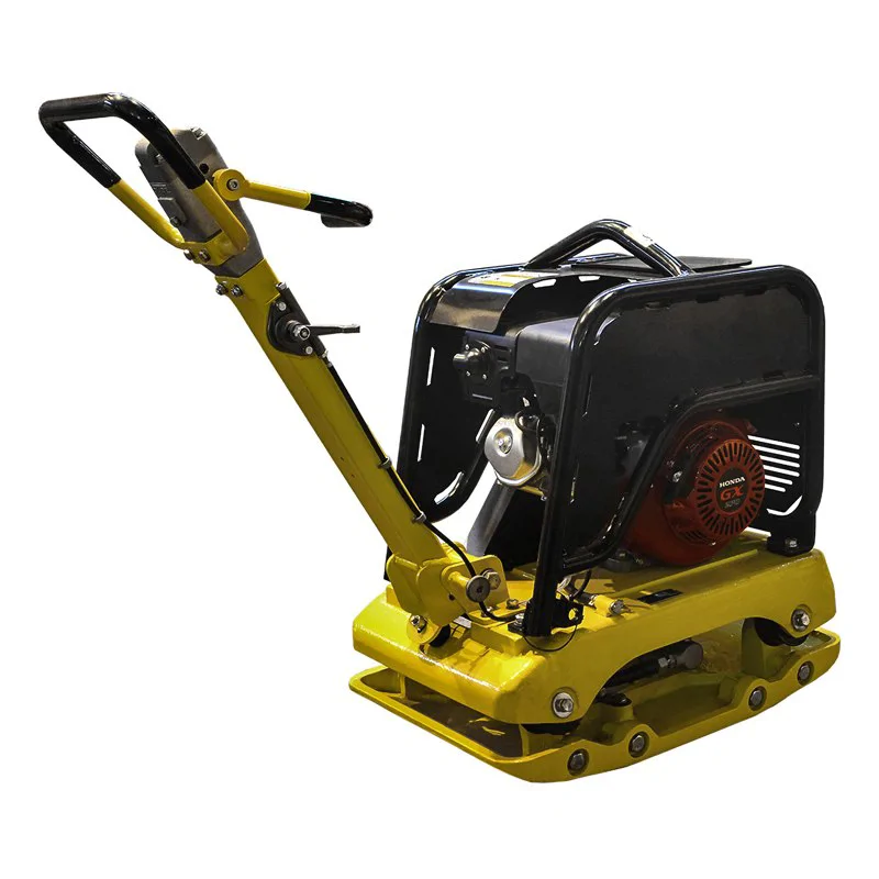 Рычаг газа удобно расположен под рукой для плавного переключения между холостым ходом и максимальными оборотами. Ручка реверса позволяет включить обратный ход. Возвратно-поступательный режим работы обеспечивает эффективное уплотнение грунта в траншеях или во время ремонта дорожного полотна.