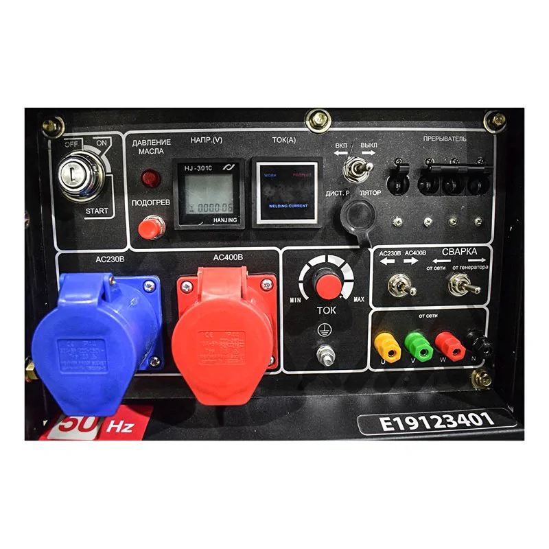 - Многофункциональный дисплей отображает все основные параметры работы генератора: Напряжение, частоту тока, и отработанные моточасы для своевременного технического обслуживания.