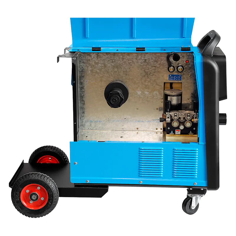 Сварочный полуавтомат ТСС EVO MIG-350 – промышленный аппарат, который поддерживает режимы ММА и MIG/MAG, выдает максимальным сварочный ток 350 А. Для простого перемещения по площадке данная модель оснащена транспортировочной тележкой с колесами и рукояткой.